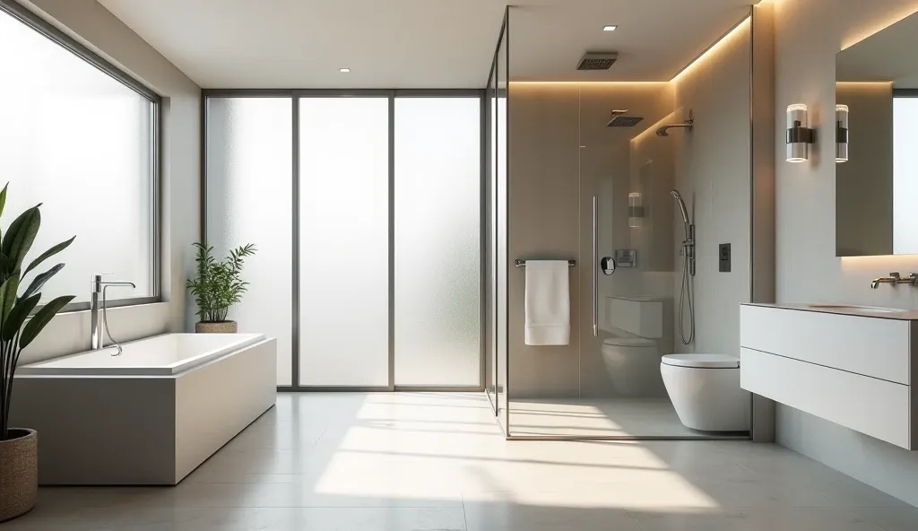 Elegante Glasduschwände für ein helles, offenes Badezimmer.